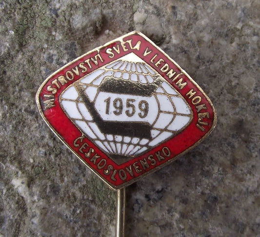 1959 Ice Hockey World Championships Czechoslovakia Face Off Sticks Pin Badge