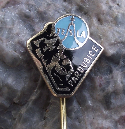 Vintage Tesla Pardubice Ice Hockey Czech Team Player Skater Logo Pin Badge