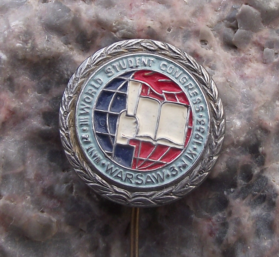 1953 IUS International Students Union 3rd Congress Warsaw Poland Pin Badge