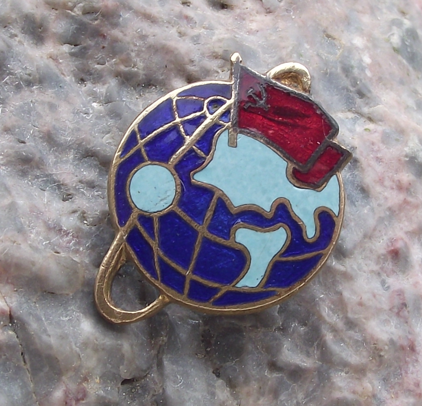 - A vintage space themed pin badge from the former Soviet Union.