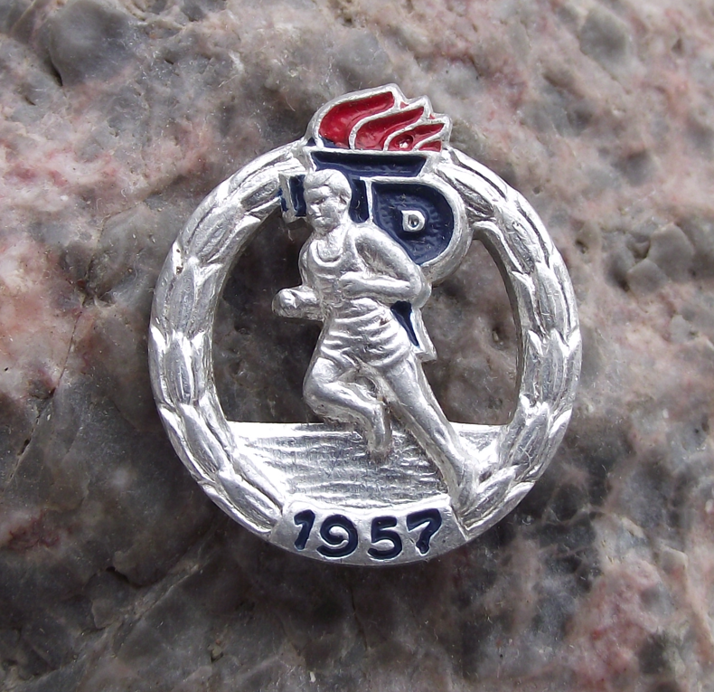 1957 Thalmann Pioneer East Germany Youth Athletics Runner Award Pin Badge