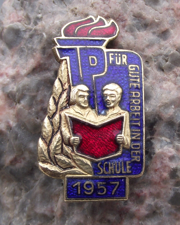 1957 Thalmann Pioneer GDR DDR Good School Work Student Award Pin Badge