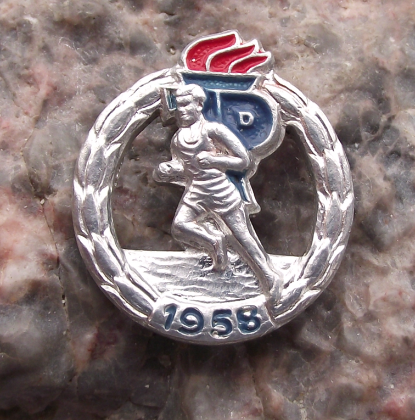 1958 Thalmann Pioneer East Germany Youth Athletics Runner Award Pin Badge