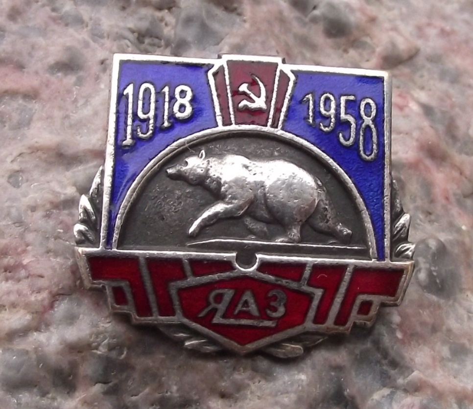 - A pretty, 1958, silver coloured metal pin badge in good condition celebrating the 40th anniversary of Yaroslavl Motor Plant