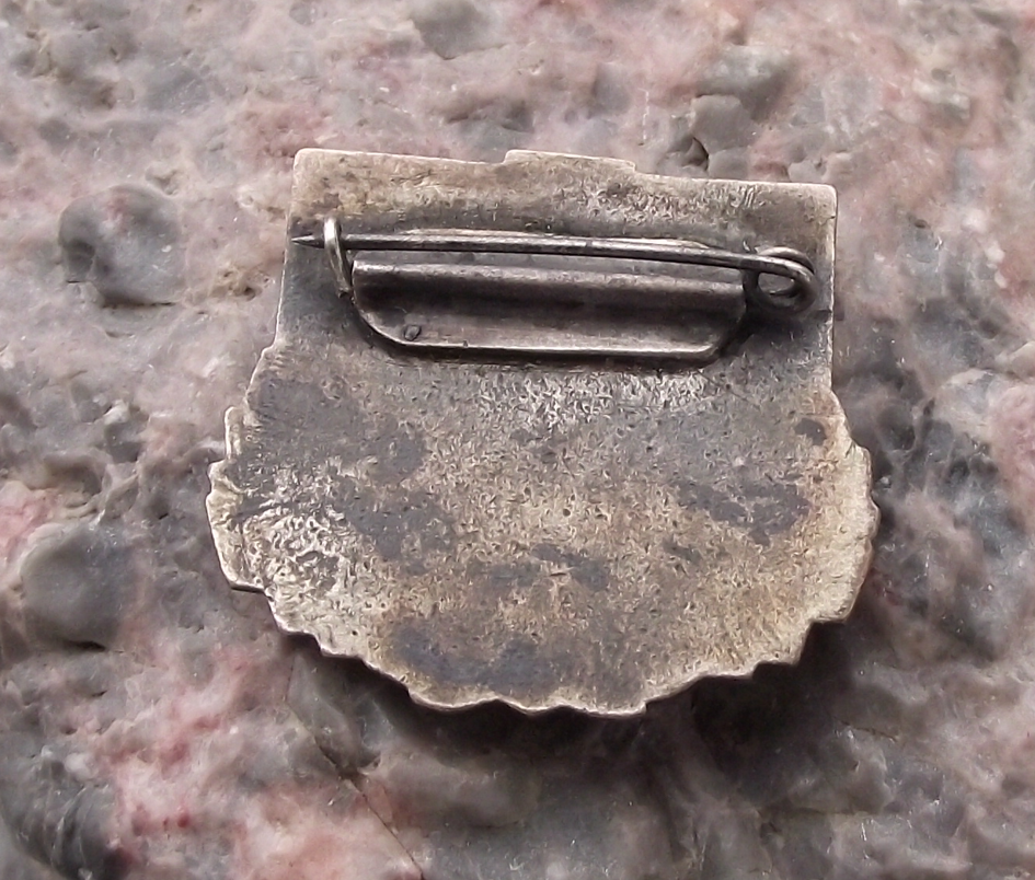 - The badge face is 2.7 cm wide and has a safety clasp style fastener to the rear.