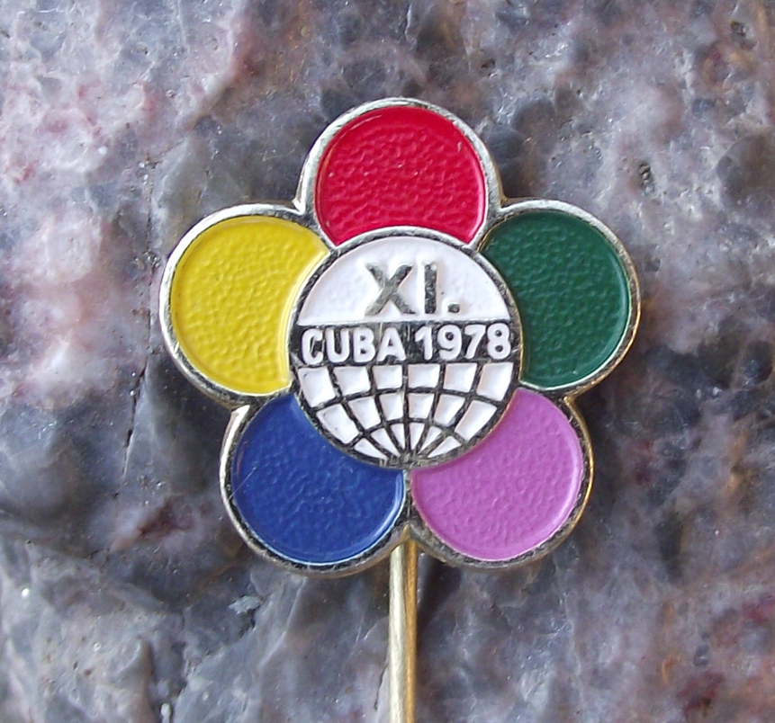 This is an historic pin badge from the 1978 11th World Youth Festival held in Cuba and attended by Fidel Castro himself. So there's a very good chance this badge was in close proximity to the late Fidel Castro.