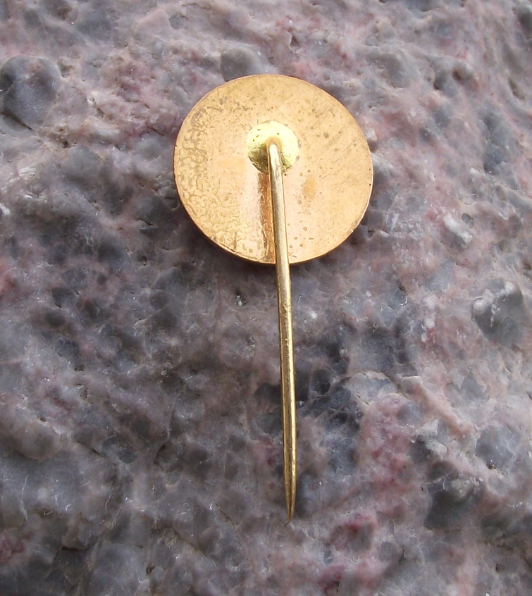 The badge face is 1.6cm in diameter and has a long, stick pin fastener.