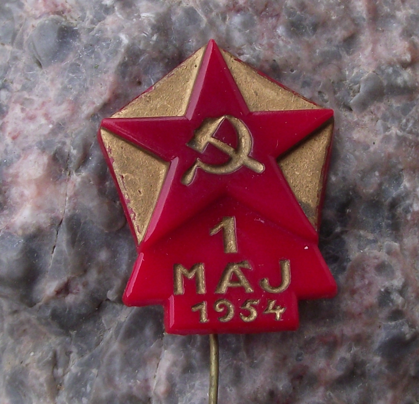 - This is a rare, hand painted, plastic pin badge from the 1954 May Day celebrations in former Czechoslovakia. Featuring the Russian star and the date 1960.