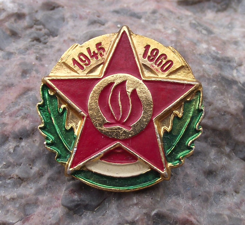 - Featuring the flaming logo on a red star and the dates 1945 - 1960