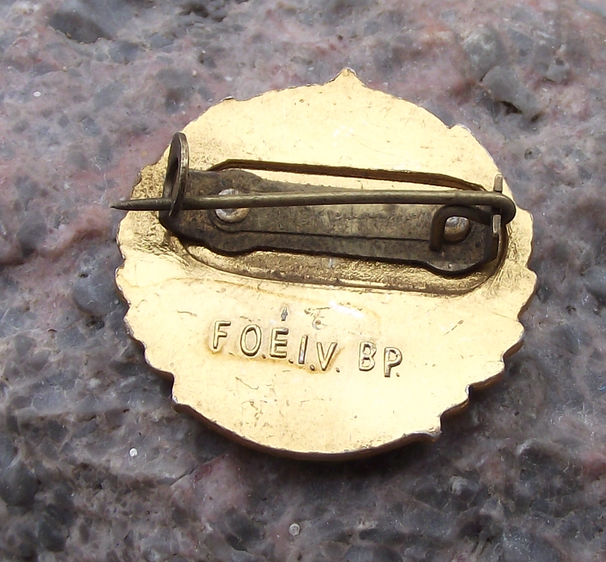 - A gold metal pin badge, the face is 2.5cm high with a safety clasp style pin fastener to the rear. Celebrating the 15th anniversary of the Hungarian youth pioneer movement.