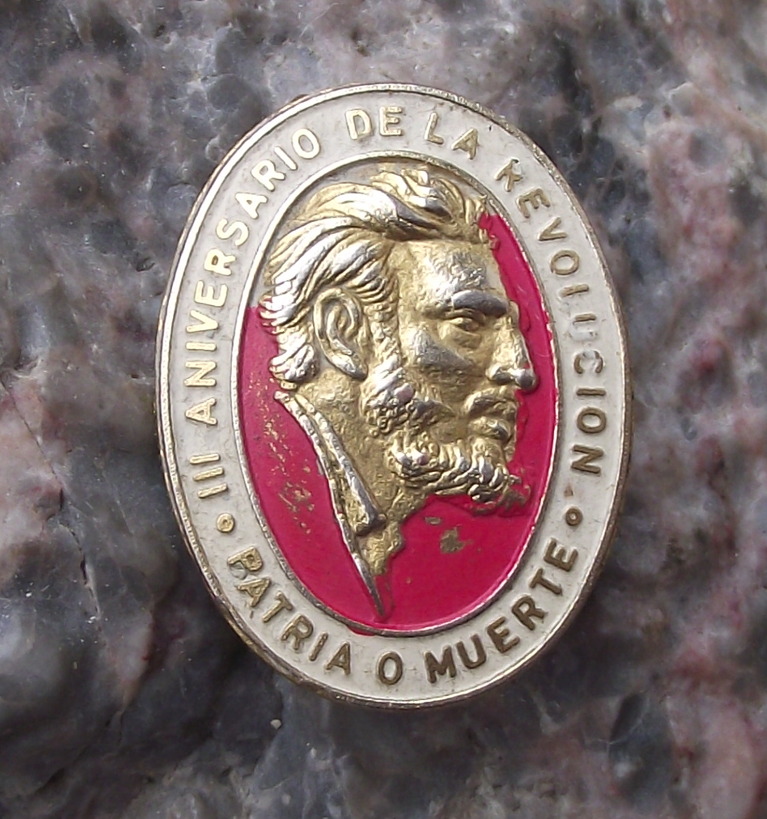1962 Cuba Revolution 3rd Anniversary Fidel Castro Patria o Muerte Pin Badge