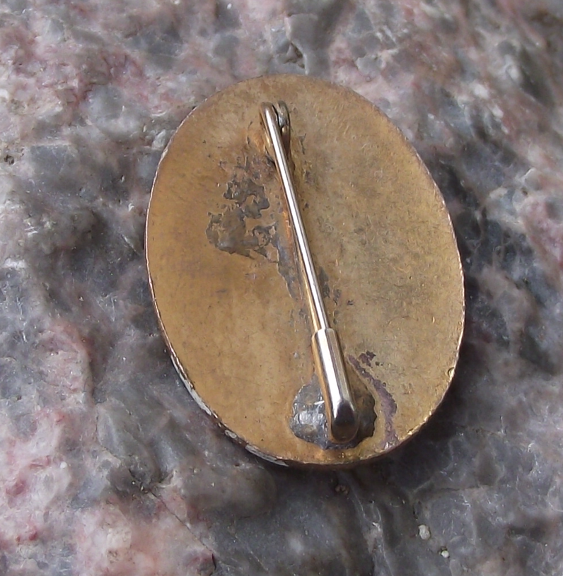 - A pretty, hand painted gold coloured metal pin badge with a 2.3cm high badge face and a safety clasp style fastener to the rear.