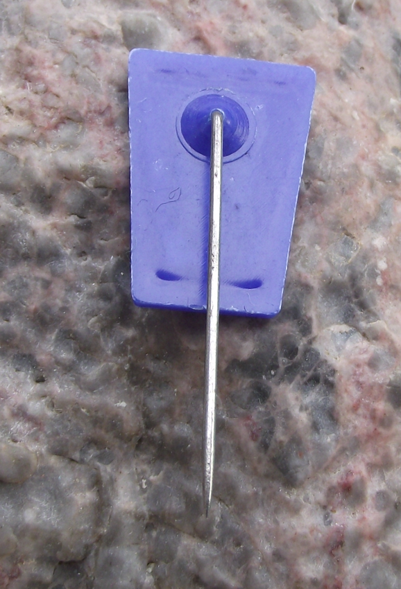 A rare, 1964, two part, plastic race pin from former Socialist Czechoslovakia (CSSR) who have hosted many MX events, even through the communist years. The badge face is 1.9cm high and the reverse side has a long, stick pin style fastener.