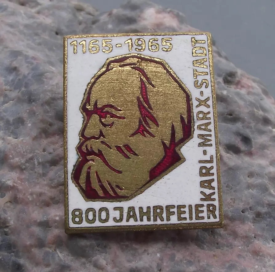 1965 Karl Marx Stadt DDR 800th Anniversary Town Hall Head Statue Pin Badge