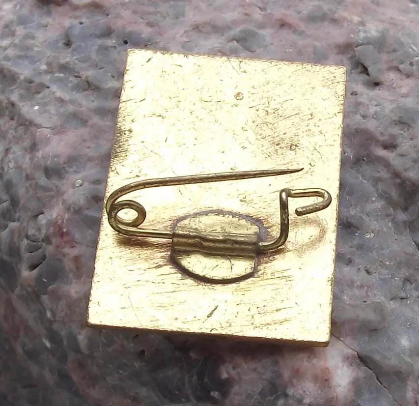 This is a pretty pin badge in excellent condition, 2.8cm high and made of a gold coloured metal with a safety clasp style fastener to the rear.