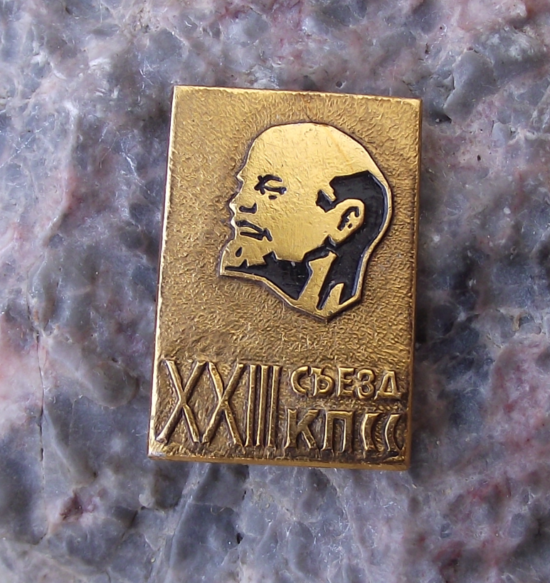 - A collectible pin badge from the 23rd Sjezd (conference) of the Congress of the Communist Party of the Soviet Union. Featuring the Roman numerals XXIII and the initials KNCC which stands for Коммунистической партии Советского Союза.