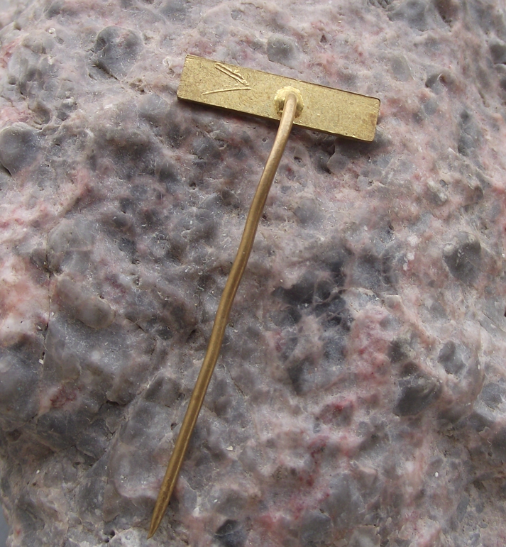 The badge face is 2cm wide and has a long, stick pin fastener.