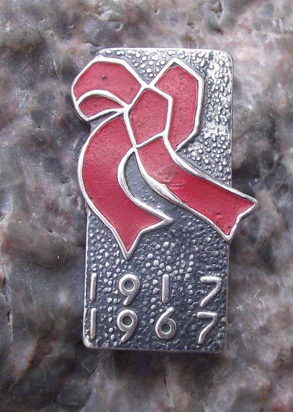 A collectible pin badge from the 1967 50th anniversary of the October Revolution.