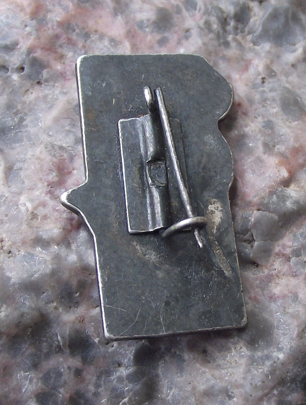 - An pretty, silver coloured metal pin badge. The badge face is 2.5cm high and has a safety clasp fastener to the rear.