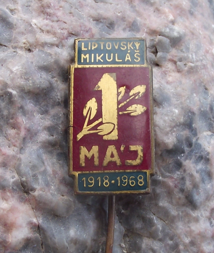 - This is a rare gold coloured metal badge from the 1968 May Day celebrations in the town of Liptovsky Mikulas former Czechoslovakia. Featuring an overtly Nationalist Lime tree leaf May motif and the dates 1918-1968. (this was the year of Russian invasion)