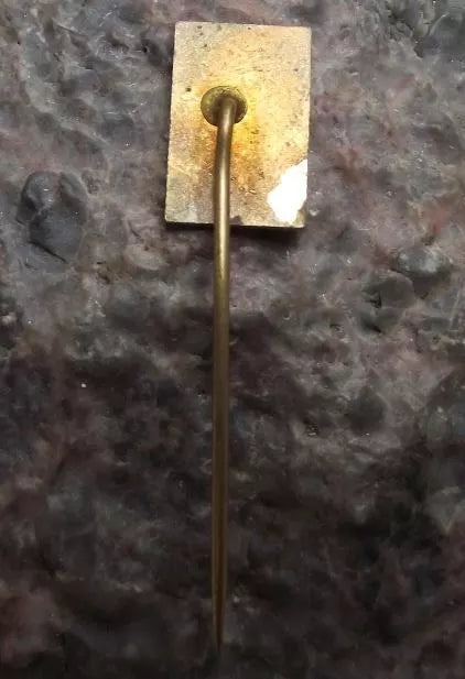 The badge face is 1.6cm high and has a long, stick pin fastener.