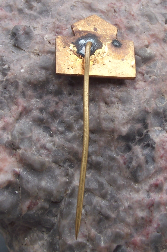 A pretty souvenir pin badge from CSAD in Hradec Kralove in former Czechoslovakia. The badge face is 1.8cm wide, made from a gold coloured metal and has a stick pin fastener to the rear.