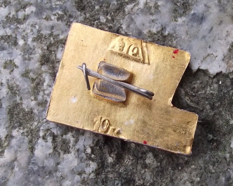 - This badge is 2.2cm wide and made from a gold coloured metal with a safety clasp style fastener to the rear.
