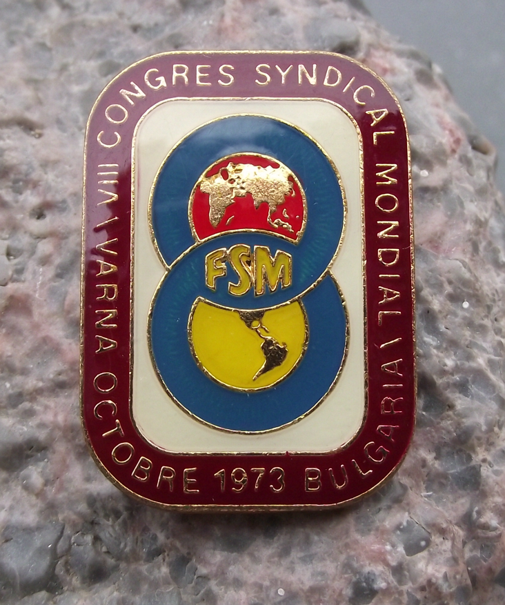 1973 FSM VII World Congress of Trade Unions Bulgaria Pin Badge