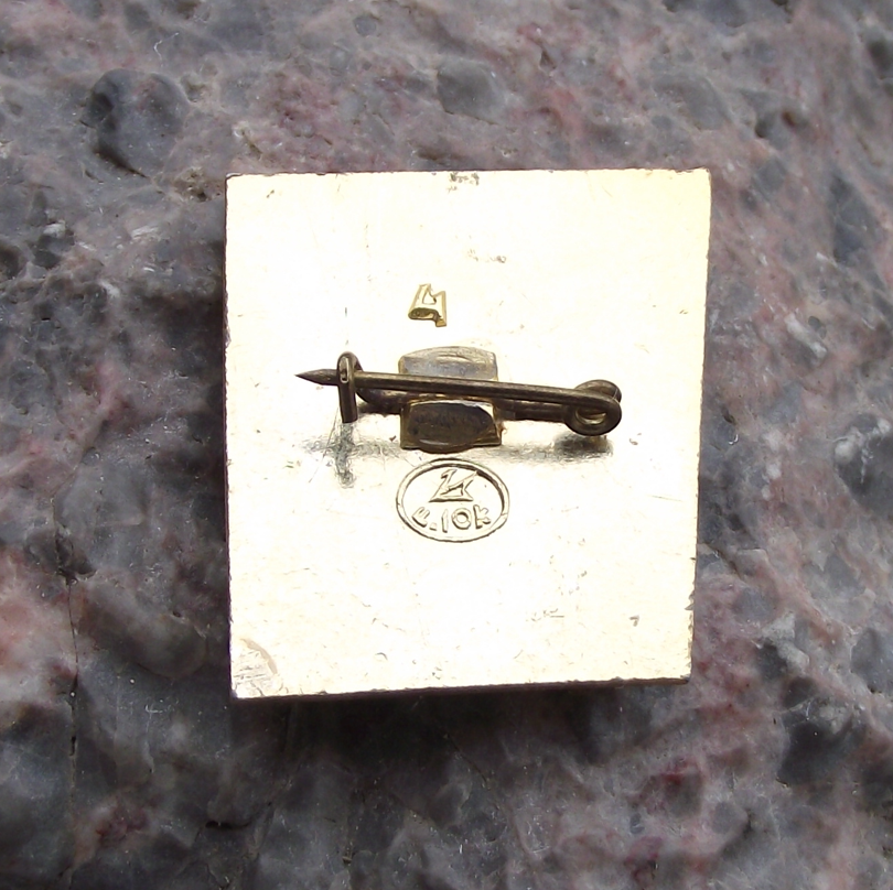 - This badge is 2.5cm high and made from a gold coloured metal with a safety clasp style fastener to the rear.