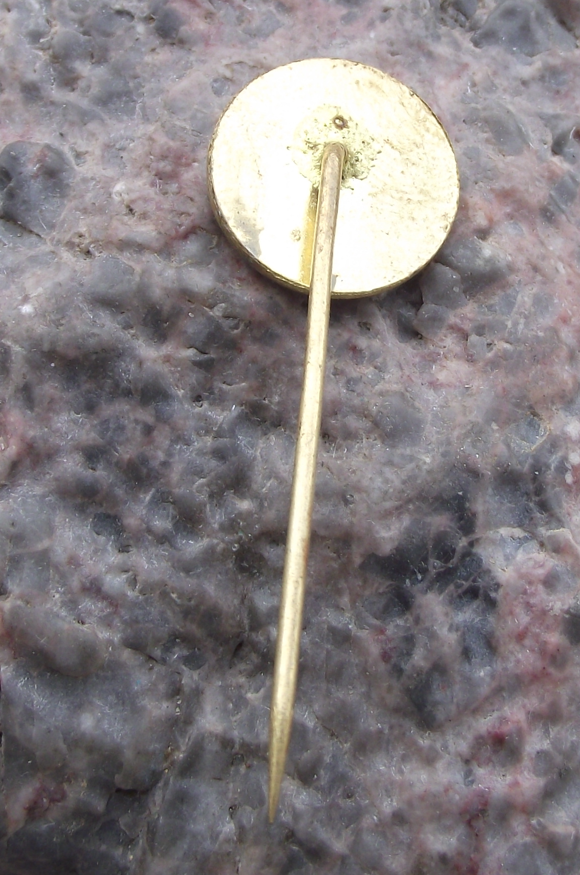 A pretty souvenir pin badge from CSAD in Banska Bystrice in former Czechoslovakia. The badge face is 1.6cm wide, made from a gold coloured metal and has a stick pin fastener to the rear.