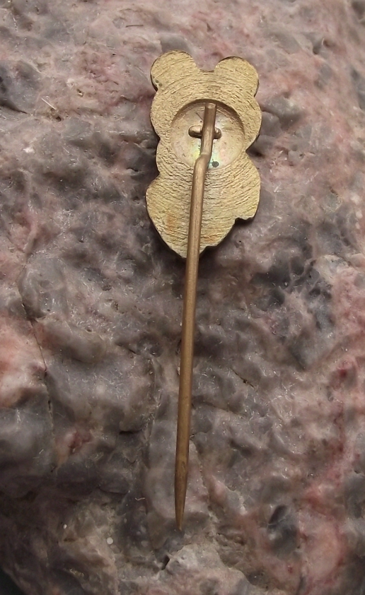The badge face is 2cm high and has a long stik pin style fastener to the rear.