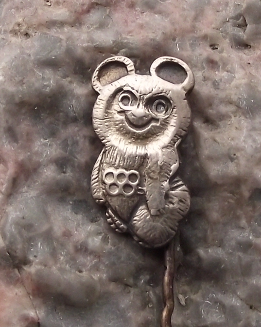 1980 Moscow Olympic Games Russian Bear Misha Official Mascot Silver Pin Badge