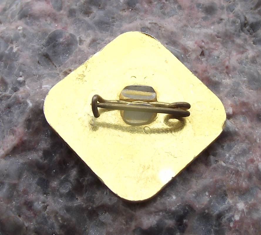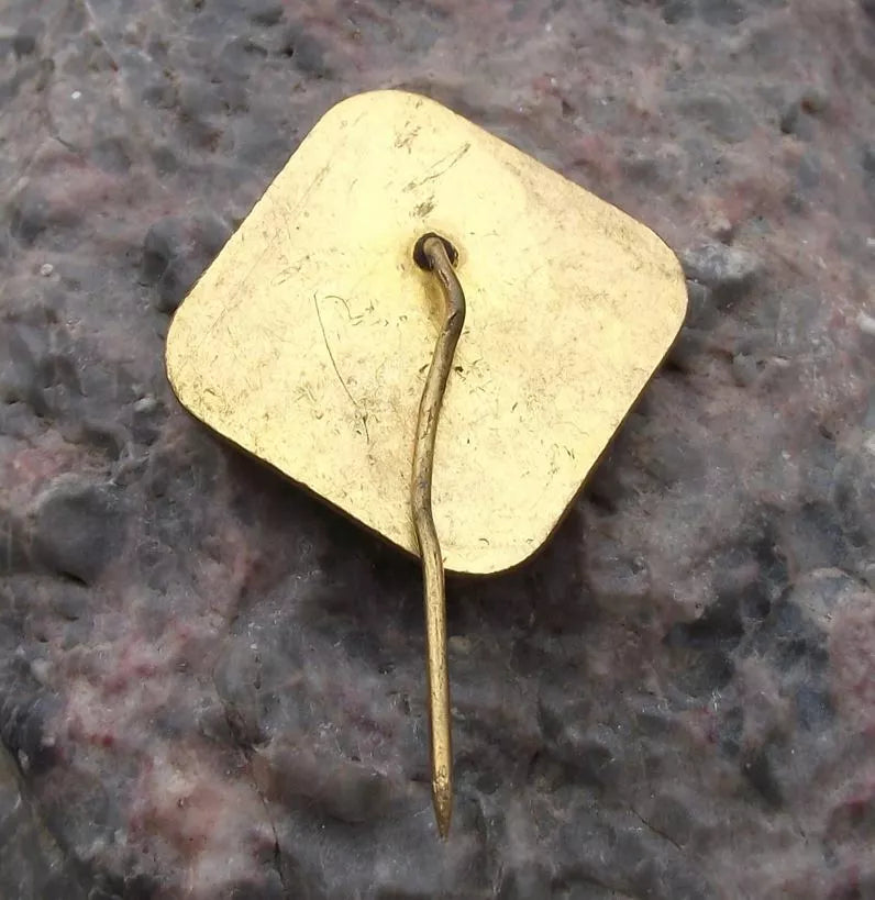 - A shiny gold coloured metal hunting themed pin from Bulgaria the badge face is 2.6cm wide and has either a long, stick pin style fastener to the rear or a safety clasp. (I have one of each available) Featuring a roaring deer head, it advertises the hunting Expo held in Plovdiv, Bulgaria.
