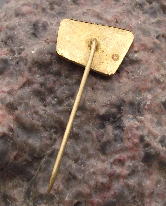 A pretty 1982 pin badge from Ostrava featuring the first and latest trains to operate from Ostrava. The badge face is 2cm wide, made from a gold coloured metal and has a stick pin fastener to the rear.