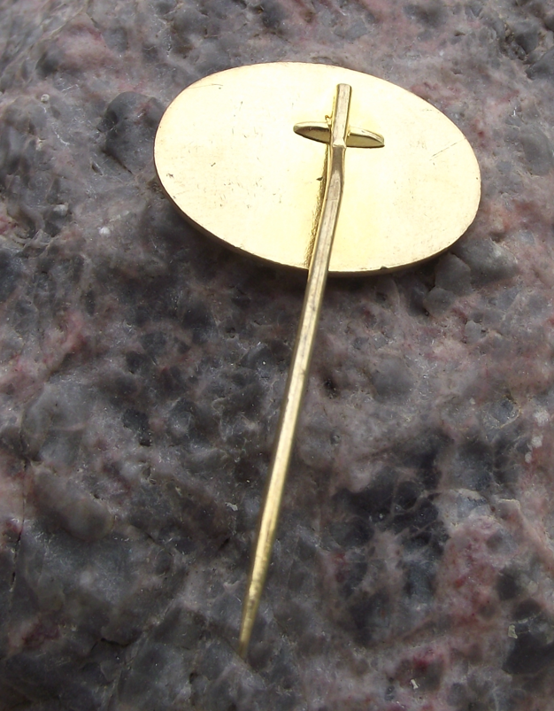 The badge face is 2.4cm wide and has a long, stick pin fastener.