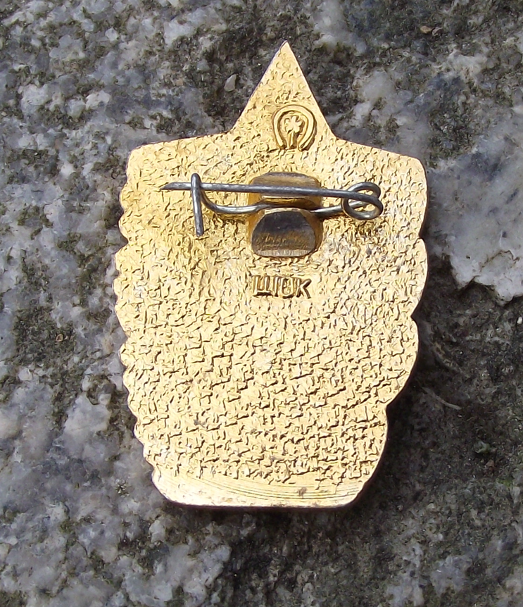 - This badge is 3.2cm high and made from a gold coloured metal with a safety clasp style fastener to the rear.