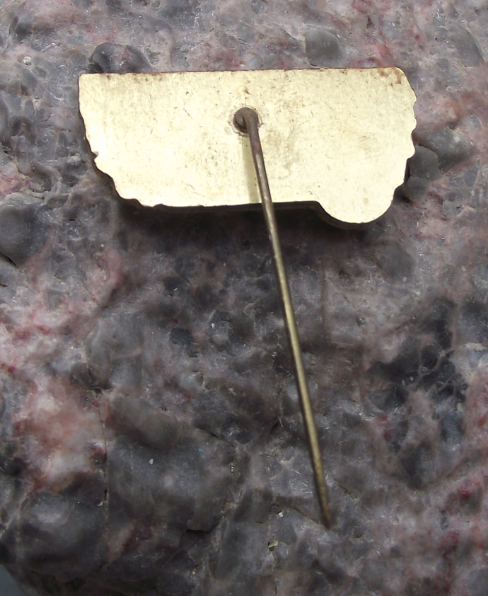The badge face is 2.6cm wide and has a long, stick pin style fastener to the rear.