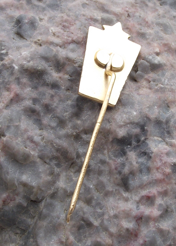 - A rare vintage gold coloured metal pin badge from former Czechoslovakia. The badge face is 2cm high and has a long, stick pin style fastener on the rear side.