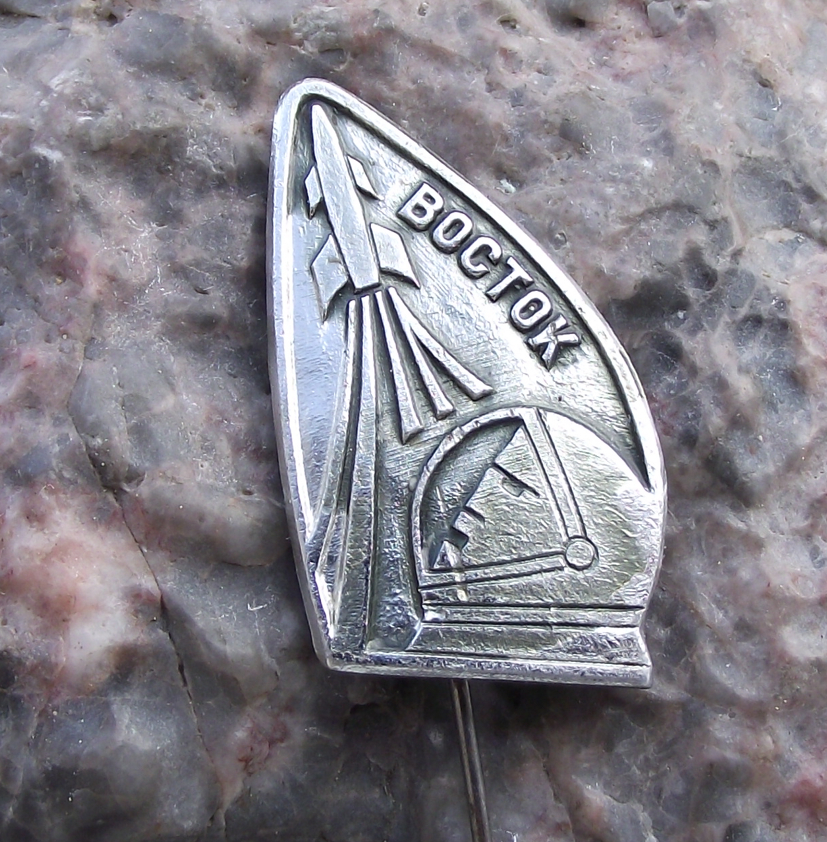 - This is a very pretty, Vostok pin badge celebrating the successful launch of Vostok 1. A silver coloured metal badge, the badge face is 2.5cm high and has a repaired stick pin style fastener to the rear. Featuring the Russian text VOSTOK.