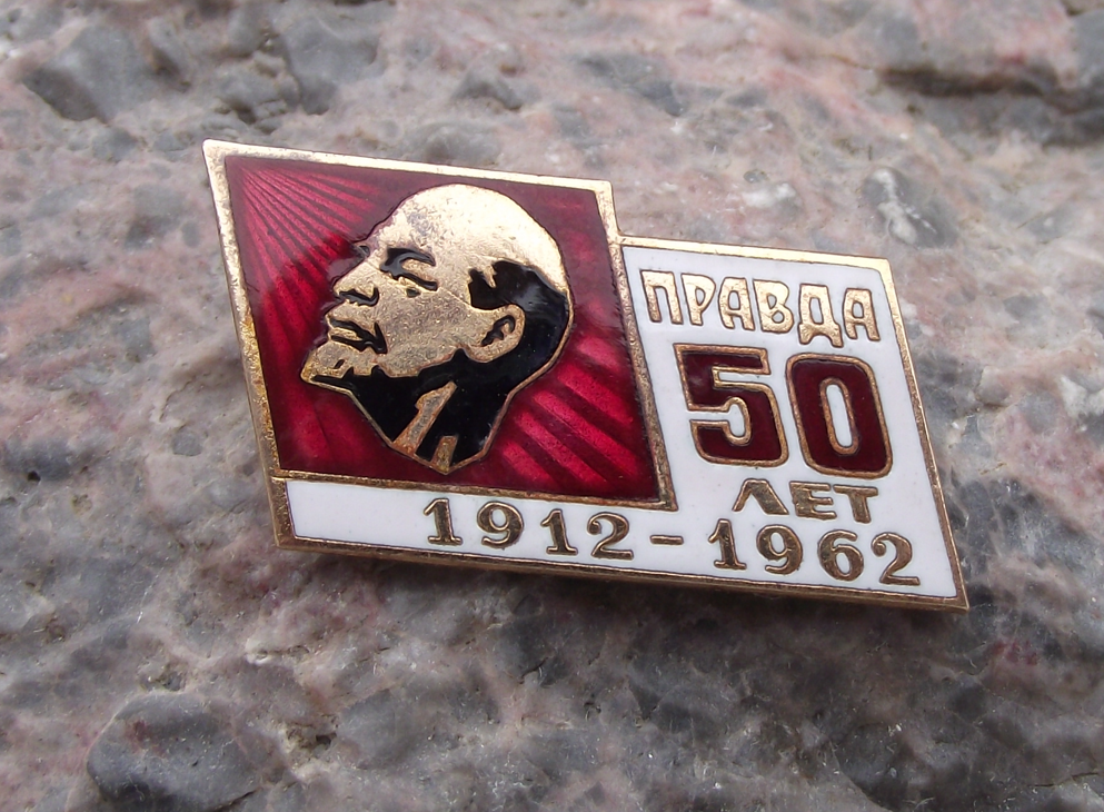 1962 Pravda Soviet Communist Newspaper 50th Anniversary Lenin Pin Badge