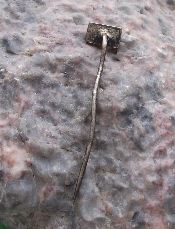 The badge face is 0.8cm wide and has a long, stick pin fastener.