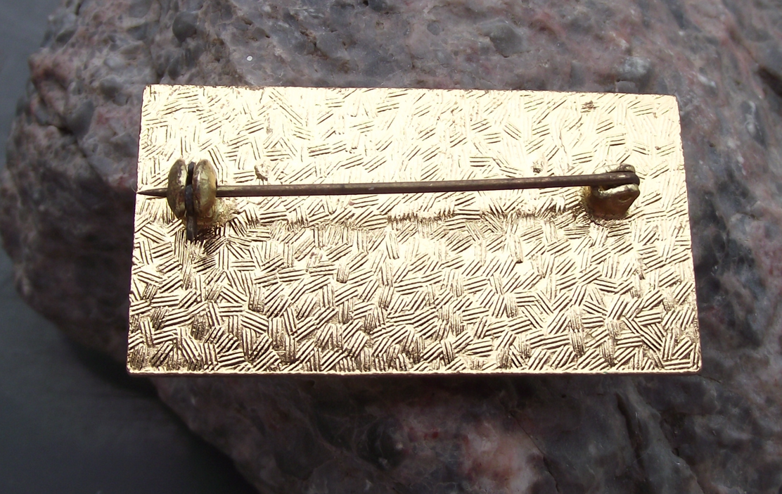 - A vintage metal badge 4.5cm wide with a safety clasp style fastener to the rear.