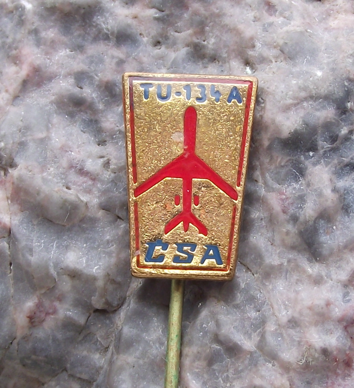 Vintage CSA Czech Airlines Tupolev TU-134A Short Haul Jet Airliner Pin Badge