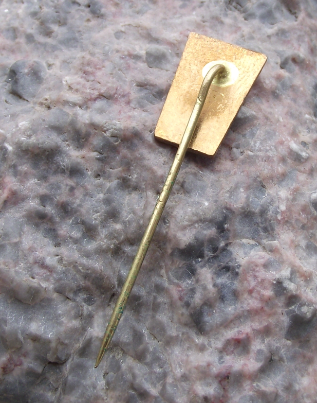 The badge face is 1.6cm high and has a long, stick pin fastener.