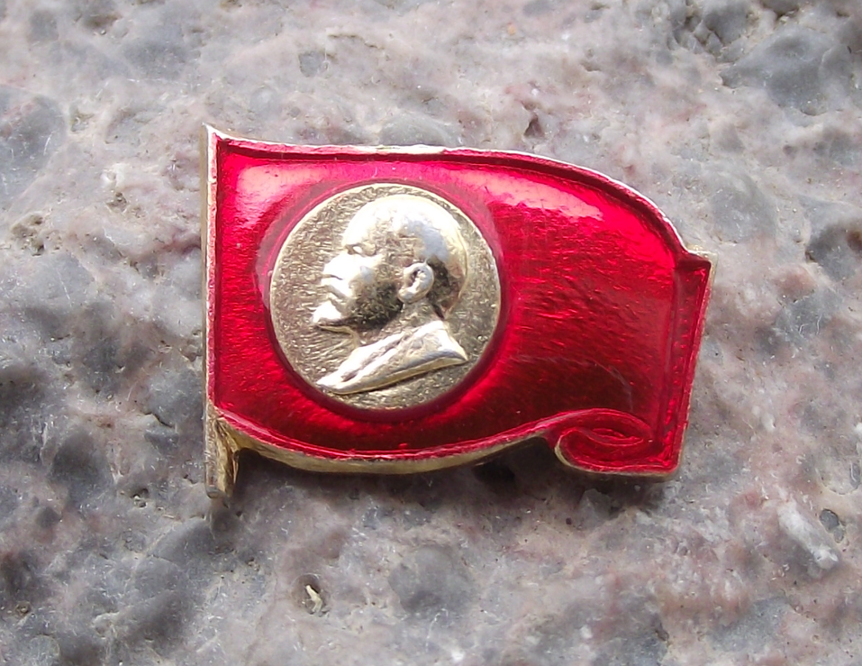 Vintage VI Lenin Head Profile Communist Leader on Red Flag Pin Badge