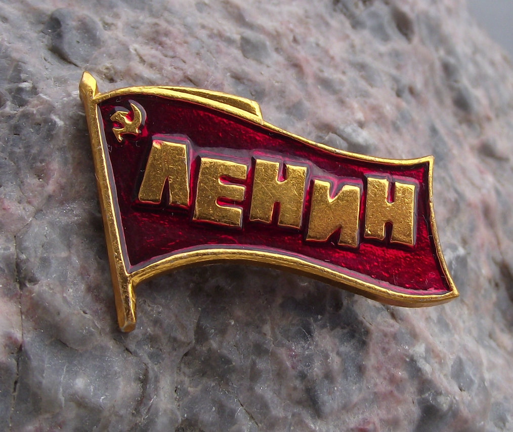- Featuring the word LENIN over the flag of the Soviet Union.