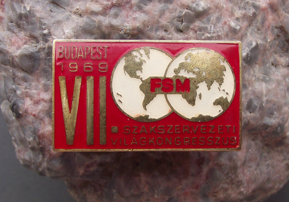 - Featuring the text 1969 Budapest 7th World Congress of Trade Unions