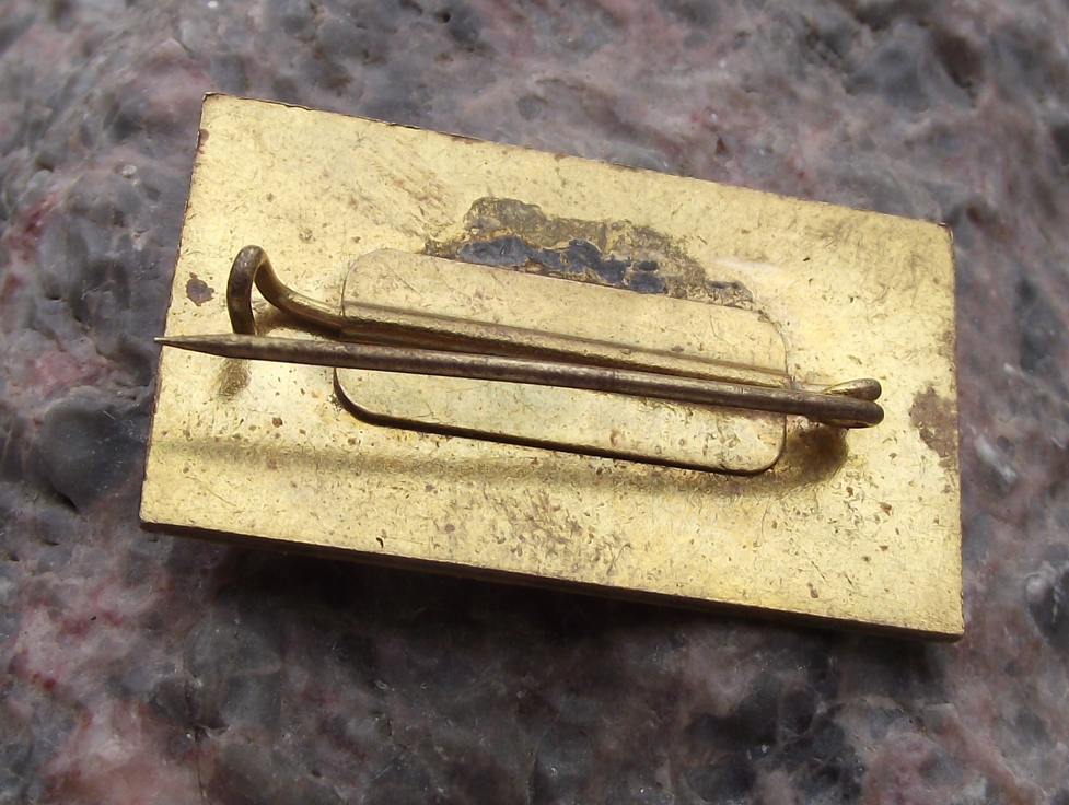 - A vintage metal badge 3.6cm wide with a safety clasp style fastener to the rear.