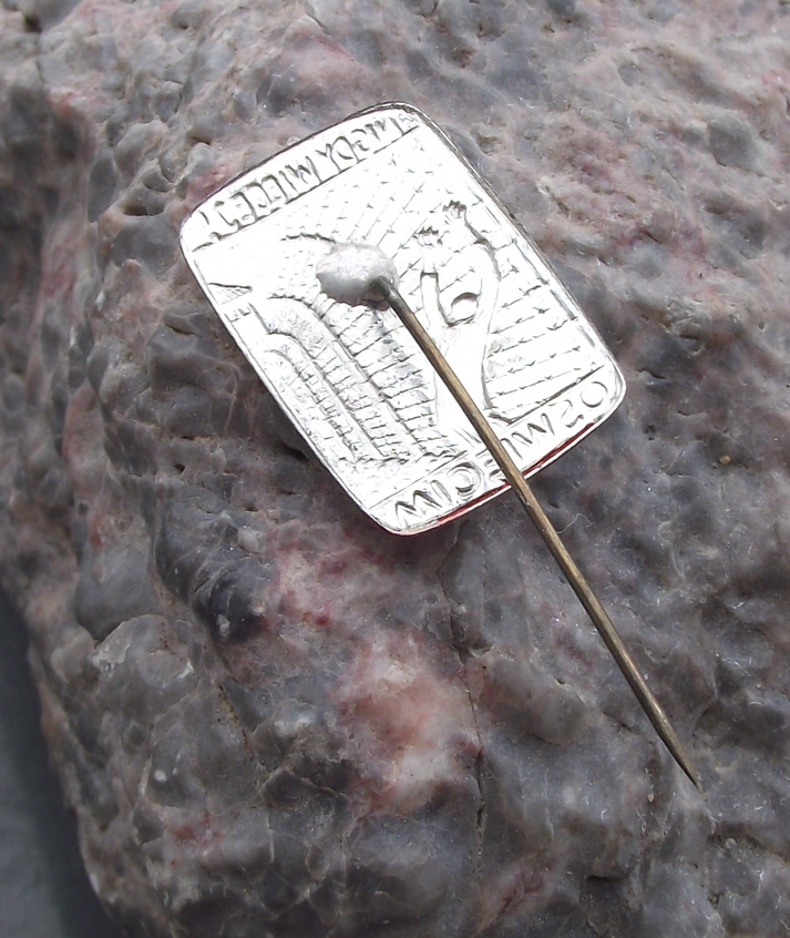 - A historically significant, vintage Polish memorial pin badge. It is made from metal. The badge face is 2.2cm high and has a short, stick pin fastener to the rear.