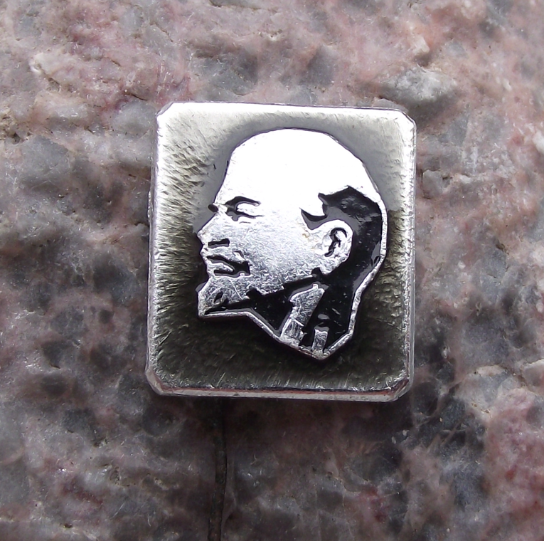 Vintage Square Lenin Head Profile Soviet Revolutionary Leader Pin Badge